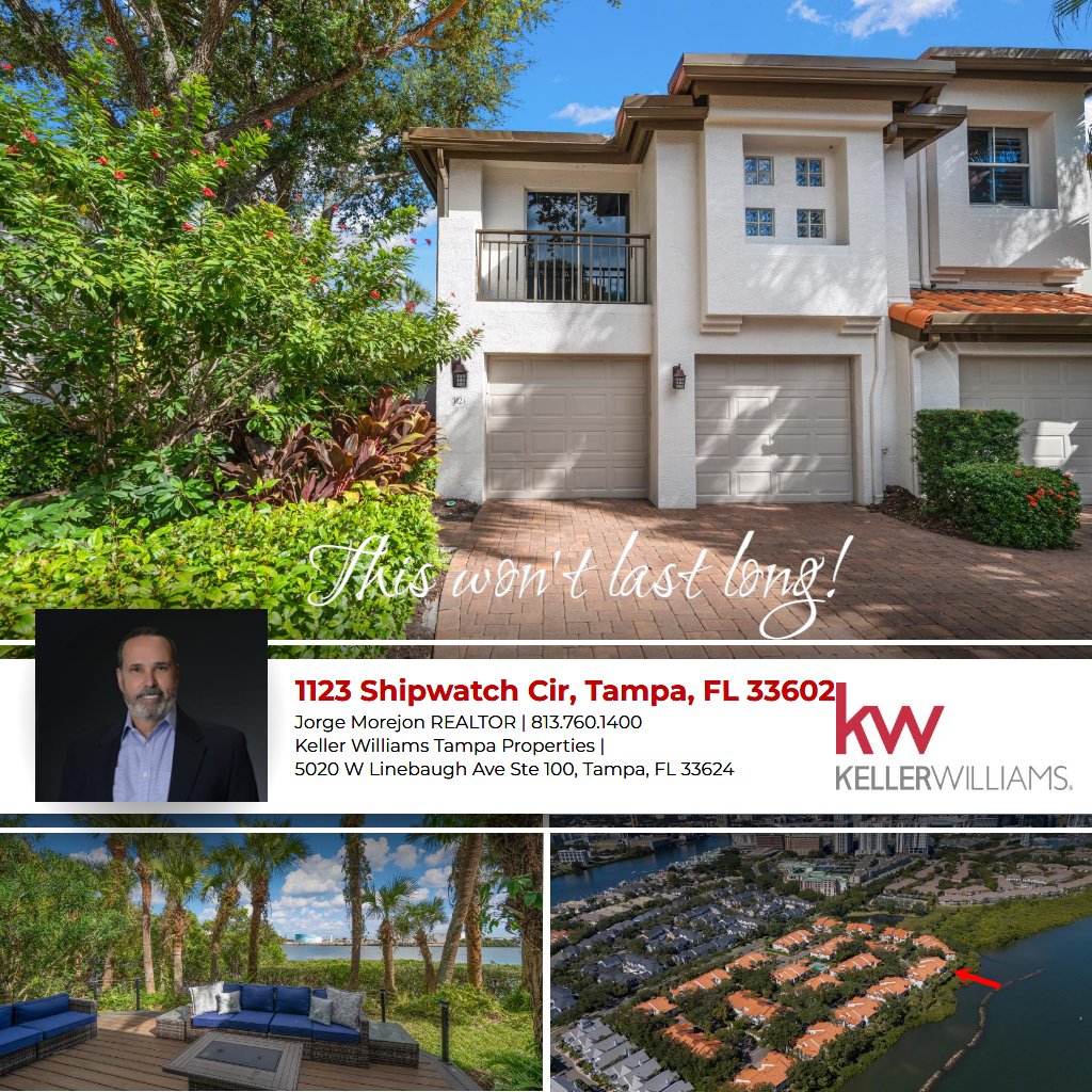 One or more photo(s) has been virtually staged. Your paradise awaits in the heart of Tampa located in the 24-hour gated community of Harbour Island. The perfect Lifestyle awaits you in this Mediterranean style corner/end home with two bedrooms plus a loft area used as an office, two bathrooms upstairs, 2-car oversized garage on waterfront (Sparkman Channel), surrounded by lush landscape with a private side entry that captures your imagination of what's inside. Current owner's created an incredible open floor plan that combines casual elegance with enhanced outdoor entertainment area on the oversized composite engineered deck. The floor plan has open views of water from every area of the downstairs with an updated kitchen that offers a wonderful island with marble counter that seats four, large stainless steel basin sink with designer faucets, the cabinetry has pull-out shelves that adds to your convenience and has a microwave hidden in the cabinets. A creative feature is the wine cabinet that stands between the kitchen and dining area. It will keep your wines cool and possibly use the bottom cabinet for a humidor or your favorite bottles. A nicely appointed half bathroom next to the updated stairwell that has featured crown molding and wainscotting. The downstair areas have crown molding, chair-rail, two tone designer paint color, battery operated shades, window treatments, alarm system with glass break, HVAC's (2024) with UV Lights on Handlers, home surge protector, LED lighting throughout and smart phone wired. Additional features are the matching lighting in dining area and pendants over the kitchen island, recessed lighting to include under counter lights that enhance the overall experience of the kitchen. Imagine anytime of the day enjoying light bright, airy views of the water a spectacular lifestyle with all the location has within walking distance. On to the upstairs where a guest room is large and may be considered a second master with walk-in closet that has built-ins a barn door on order and a bathroom with dbl vanities, garden tub and a separate shower. As we move to the Primary you will pass a very nice niche area that was used as an office space, has cabinets for storage. The Primary bedroom is large with an area that may be used for additional seating or exercise equipment with wonderful views of the channel, the windows have plantation shutters that more than likely will remain open to enjoy the sunshine and tropical landscape. A spacious walk-in closet accessed through barn doors has built-ins to keep you organized. The ensuite has dual sinks, garden tub and a separate area for the walk-in shower and toilet. Additional enhancements are the wood floors with porcelain marble style floors in the bathrooms, water filtration system, you have fios and spectrum wired, electric vehicle station in garage, additional storage in garage area, impact rated doors that lead to the oversized deck surrounded by lush tropical landscape with the beautiful view of the water. According to Seller's New Roof to be installed 2026, Special Assessment has been paid. You want Lifestyle and Location! this is the one for you within walking distances to upscale restaurants, Benchmark International Arena, Riverwalk, Sparkman Wharf and so many nice areas that will add to your quallity of life.
