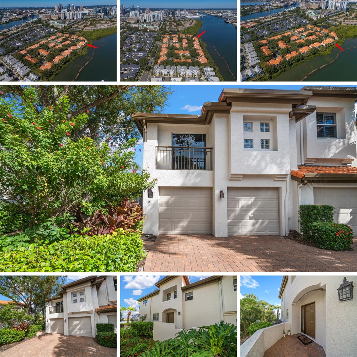 One or more photo(s) has been virtually staged. Your paradise awaits in the heart of Tampa located in the 24-hour gated community of Harbour Island. The perfect Lifestyle awaits you in this Mediterranean style corner/end home with two bedrooms plus a loft area used as an office, two bathrooms upstairs, 2-car oversized garage on waterfront (Sparkman Channel), surrounded by lush landscape with a private side entry that captures your imagination of what's inside. Current owner's created an incredible open floor plan that combines casual elegance with enhanced outdoor entertainment area on the oversized composite engineered deck. The floor plan has open views of water from every area of the downstairs with an updated kitchen that offers a wonderful island with marble counter that seats four, large stainless steel basin sink with designer faucets, the cabinetry has pull-out shelves that adds to your convenience and has a microwave hidden in the cabinets. A creative feature is the wine cabinet that stands between the kitchen and dining area. It will keep your wines cool and possibly use the bottom cabinet for a humidor or your favorite bottles. A nicely appointed half bathroom next to the updated stairwell that has featured crown molding and wainscotting. The downstair areas have crown molding, chair-rail, two tone designer paint color, battery operated shades, window treatments, alarm system with glass break, HVAC's (2024) with UV Lights on Handlers, home surge protector, LED lighting throughout and smart phone wired. Additional features are the matching lighting in dining area and pendants over the kitchen island, recessed lighting to include under counter lights that enhance the overall experience of the kitchen. Imagine anytime of the day enjoying light bright, airy views of the water a spectacular lifestyle with all the location has within walking distance. On to the upstairs where a guest room is large and may be considered a second master with walk-in closet that has built-ins a barn door on order and a bathroom with dbl vanities, garden tub and a separate shower. As we move to the Primary you will pass a very nice niche area that was used as an office space, has cabinets for storage. The Primary bedroom is large with an area that may be used for additional seating or exercise equipment with wonderful views of the channel, the windows have plantation shutters that more than likely will remain open to enjoy the sunshine and tropical landscape. A spacious walk-in closet accessed through barn doors has built-ins to keep you organized. The ensuite has dual sinks, garden tub and a separate area for the walk-in shower and toilet. Additional enhancements are the wood floors with porcelain marble style floors in the bathrooms, water filtration system, you have fios and spectrum wired, electric vehicle station in garage, additional storage in garage area, impact rated doors that lead to the oversized deck surrounded by lush tropical landscape with the beautiful view of the water. According to Seller's New Roof to be installed 2026, Special Assessment has been paid. You want Lifestyle and Location! this is the one for you within walking distances to upscale restaurants, Benchmark International Arena, Riverwalk, Sparkman Wharf and so many nice areas that will add to your quallity of life.