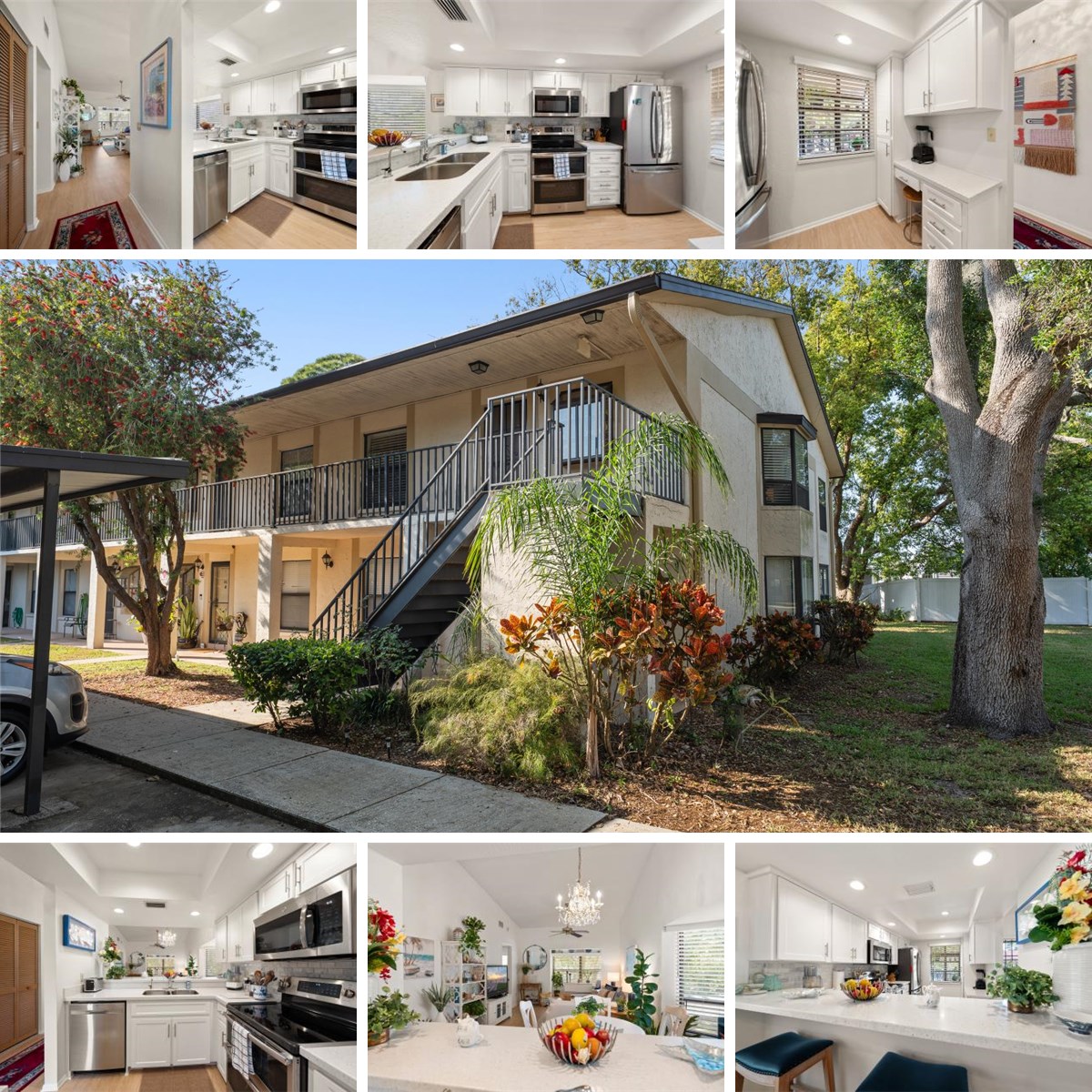 Experience the perfect blend of modern comfort and natural beauty in this meticulously maintained second-floor corner unit. Located in the established community of Deerwood Gardens, this light-filled residence offers a unique "nature-in" feel. This home offers a beautiful bay window in the dining area and a lovely sunroom, both providing serene views of the mature wooded greenery. The open-concept layout feels incredibly expansive thanks to soaring vaulted ceilings and is perfectly paired with durable luxury vinyl flooring throughout. At the heart of the home, a beautifully updated kitchen features a convenient breakfast bar that overlooks the main living area, creating a bright and connected atmosphere for entertaining friends and loved ones. The smart split-bedroom floor plan ensures total privacy, featuring a spacious owner’s suite with a private en-suite bath and a generous walk-in closet. For added convenience, your dedicated interior laundry area is tucked away near the guest wing. This pet-friendly, all-ages community offers a wealth of amenities, including a pool, clubhouse, tennis, and shuffleboard. While the setting feels secluded and quiet amongst the trees and nature, you are just minutes from the shopping, dining, and movies at Seminole City Center, as well as the sprawling trails of Walsingham Park and Lake Seminole Park. This move-in-ready gem is exceptionally well-priced for a quick sale—don’t miss your chance at the ultimate Seminole retreat!