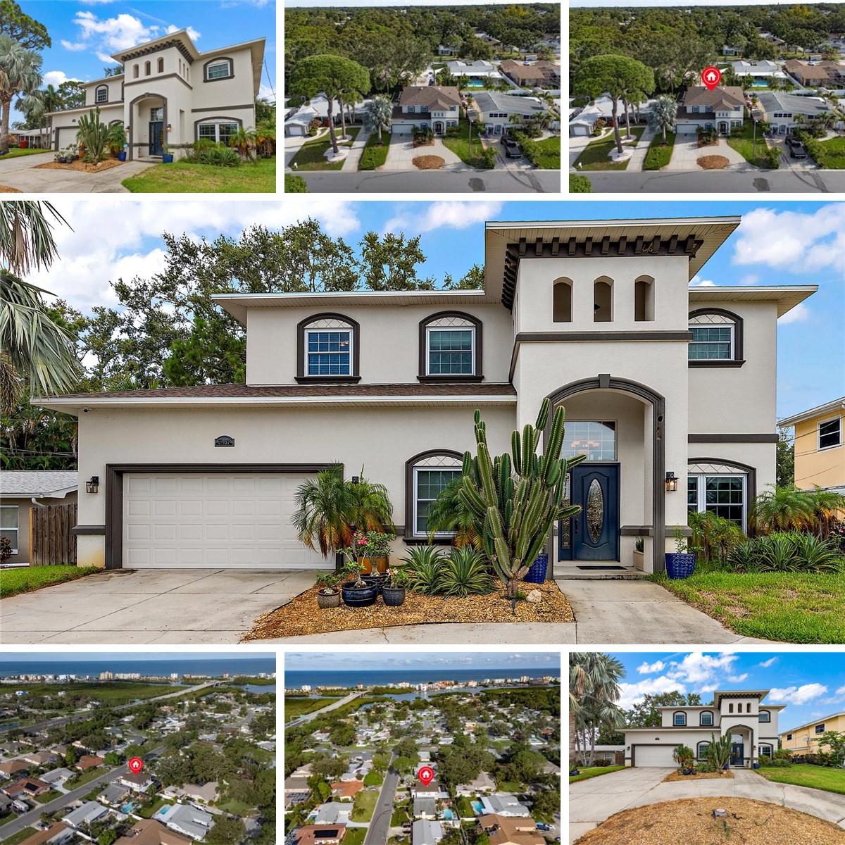 Beautiful Mediterranean style home built in 2005 is waiting for a new family! Offering over 3200 sq feet, four bedrooms, 3.5 baths, media room, and plenty of living space! Beautiful new (2024) screen enclosed pool with sun shelf, electric pool heater, LED lighting and extended covered patio with room galore for entertaining and poolside parties! Gorgeous entry into formal living room and dining room area. Beautiful crown moldings through out. Media room offers privacy from the main living room area. Gorgeous, large kitchen with custom cherry cabinetry, granite counter tops, stainless appliances, breakfast bar and pot filler faucet at stove. Walk in pantry for additional storage, separate laundry room, half bath and eat-in area and family room complete the bottom level. Sliders from kitchen area to your beautiful pool and pavered patio area with a fully fenced yard. Upstairs you will find four bedrooms, one en-suite, an additional bathroom with tub, and 10.5 ceilings. Large master suite with attached office, nursery or exercise room. Spacious en-suite bathroom offering walk in closets, double sinks, shower stall and Jacuzzi tub. New roof in 2024, windows 2020, exterior paint 2020. This lovely home is located within walking distance to the beach, close to shopping, restaurants, schools and NON flood zone!