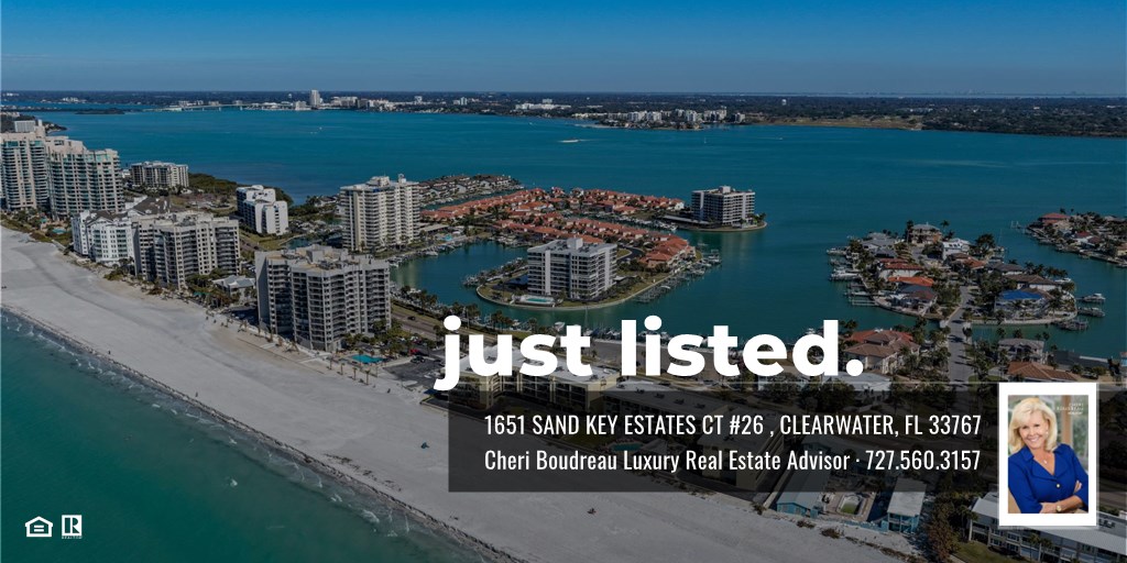 Located in gated Harborage 1 on Sand Key, amenities include a heated waterfront pool, gas grills, covered parking, and an easy walk to the beach.