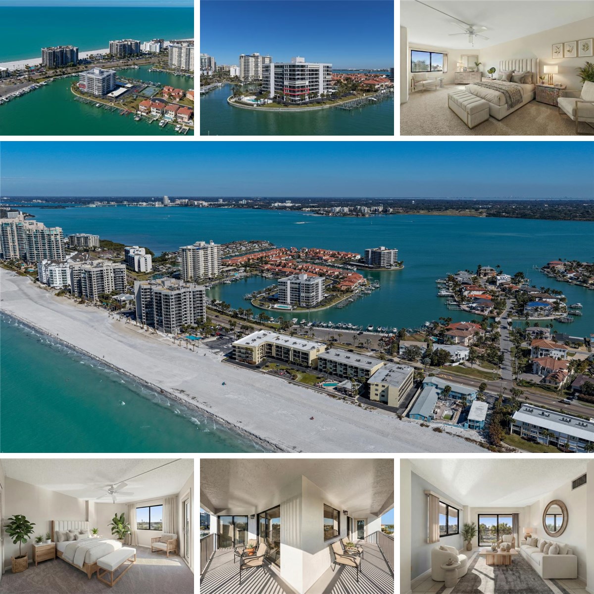 Perfectly positioned on the southwest corner, this 1,530-square-foot waterfront condo offers sweeping views of the Intracoastal Waterway and Gulf of Mexico, showcasing stunning sunsets from nearly every room. A 47-foot wraparound terrace provides all-day sun and shelter from north winds. Meticulously maintained, the bright, open layout features new bedroom carpet and a brand-new AC system. The seller is offering a $5,000 credit toward a primary bath update.