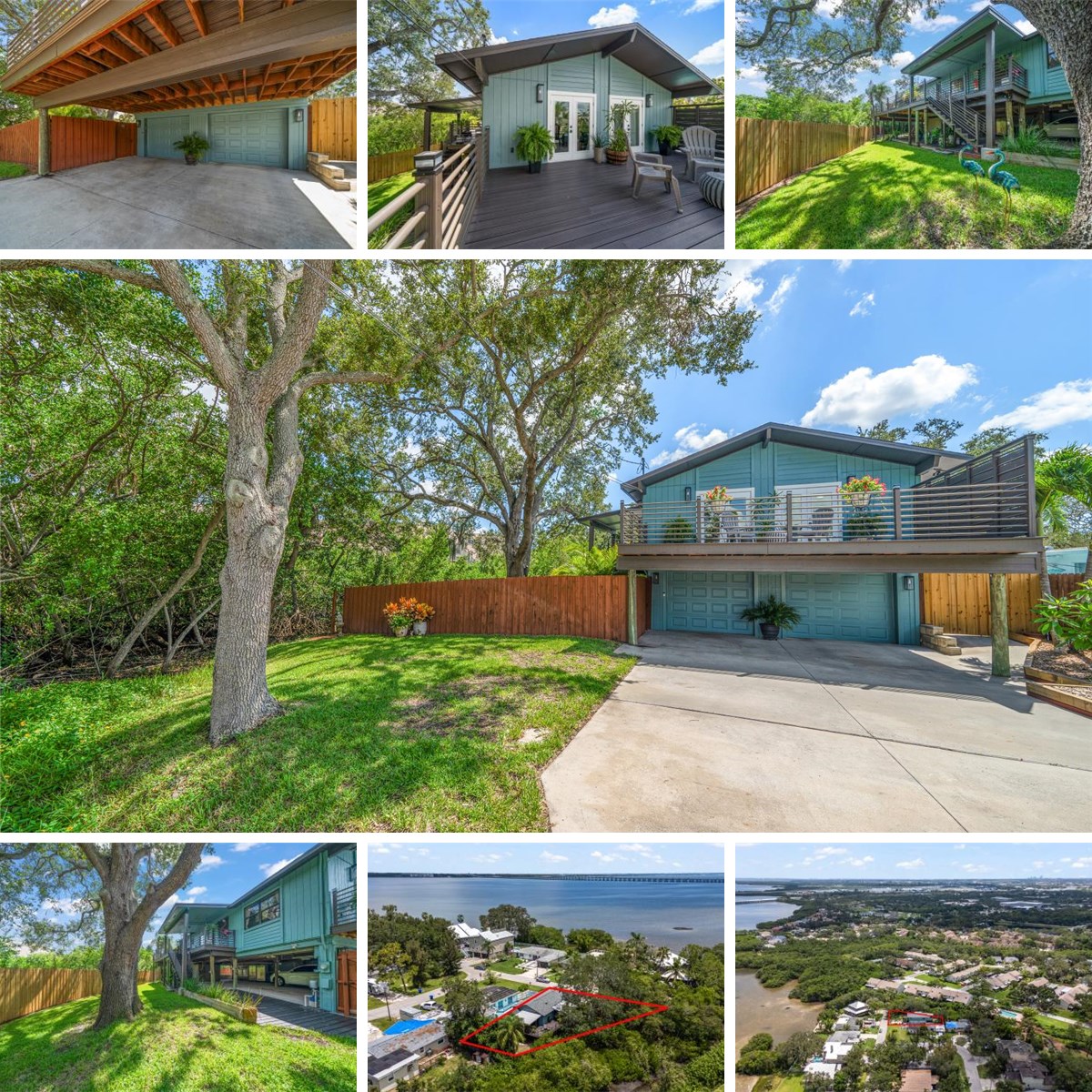 Unique Opportunity for a Tastefully Remodeled Designer-Owned Hidden Gem Tucked Away at the end of a Quiet Street in Clearwater. An Expansive Deck Surrounds the Home & not only offers Gorgeous Views, but is an Extension of the Living Area & serves as a Serene Connection with Nature. The massive garage area can accommodate 4 vehicles or serve as a space for Artists, Mechanics, Wood Shop or other Hobbies. Brazilian Cherry Hardwood Floors. Brand New Roof 2025. The Master Bedroom Opens to the Front Deck, features a Large Walk-In Closet & Stunning Bathroom with Granite Counter, Vessel Sink & Glass Enclosed Shower. This Convenient central County location is just minutes to Tampa, St Pete, Shopping, Golf Courses Dining & World Class Beaches. Those Particular Buyers who are bored with the abundance of cookie cutter homes on the market will truly appreciate this Meticulously Maintained Custom Stilt Home.