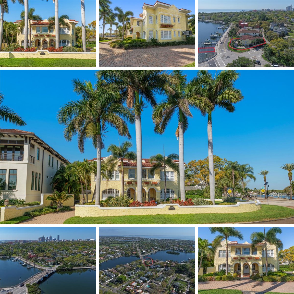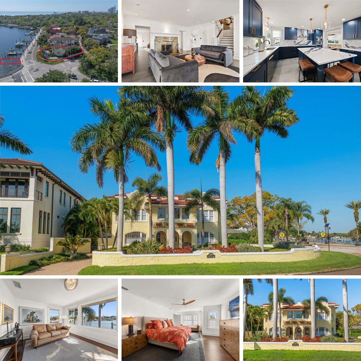 Experience the perfect blend of timeless elegance, old-world charm, and modern functionality in this stunning waterfront home in Old NE St Pete. Rarely does a property offer such an exceptional combination of character, space, and breathtaking water views. This impressive residence features 6 bedrooms, 5½ bathrooms, two flexible rooms ideal for a home office or den, and a garage apartment above the two-car garage—perfect as an ADU rental, guest house, or private retreat. Step inside from the inviting expansive front porch and discover beautifully designed living spaces, including a spacious living room with a marble wood-burning fireplace, a formal dining room, and a private office with elegant double French doors. The charming arched front door and numerous arched windows throughout the home highlight its timeless architectural character. Next, step into the stunning spacious gourmet kitchen, featuring a large island, rich wood cabinetry, and stunning quartz countertop; complete with a Viking gas stove. Designed for both everyday living and effortless entertaining, the kitchen opens to a large welcoming family room—perfect for gathering with family or hosting guests. Bedrooms are thoughtfully arranged, including a downstairs ensuite bedroom just off the family room. Upstairs, a light-filled study showcases panoramic water views, while the luxurious primary suite offers generous space and a spa-like bath featuring both an indoor and outdoor shower as well as a garden tub. One additional bedroom includes a private ensuite bathroom with shower, while two others share a convenient Jack-and-Jill bathroom. Outdoor living is just as impressive. Enjoy a private backyard pool, perfect for relaxing or entertaining. Across the street, your deeded waterfront lot provides easy boating access just around the corner to Tampa Bay. With incredible views, abundant space, and unique amenities, this remarkable home truly offers the best of waterfront living in a perfect location, as you'll love to walk the waterfront along the Vinoy basin, enjoy art festivals, many concerts, lovely restaurants, and all that downtown St Pete has to offer! *Note that the garage apartment as well as the downstairs bedroom could be a mother-in-law suite. Garage apt has kitchenette in it; bedroom in home has an ensuite with clawfoot bathtub.