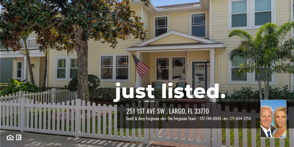 Luxurious Townhome in Largo Historical District! Welcome to West Bay Village, an upscale, pet friendly, executive townhome community in the heart of historical downtown Largo, with charming white picket fences, vintage streetlights, brick streets, and impeccably maintained landscaping. Warmth and charm radiate from this lovely 3 bed / 2.5 bath townhome. Enter through the gate, up the brick walkway, through the beautifully landscaped yard, onto the picturesque, covered porch. Downstairs has 9’ high ceilings, crown molding, wood floors in living room and formal dining room. The kitchen is a chef’s delight, with breakfast bar, 42” upper cabinets, and walk-in pantry. Adjacent to the kitchen, is the formal dining room, with chair rail, which is spacious and perfect for family gatherings. This home is inviting, with custom blinds on all windows. A half bath is conveniently located near the garage doorway and stairway to the second floor. Soft, carpeted stairs lead to the spacious upstairs landing. The large laundry room with a washer / dryer and a utility sink is located in the upstairs hallway for easy access. With plush carpeting throughout the 2nd level, a split plan, the enormous master suite has a huge walk-in closet. Double doors lead to the en suite, with shower, garden tub, separate water closet and counters with dual sinks and vanity. On the other side of the landing are two other spacious bedrooms, with large walk-in closets. The two bedrooms share a full bath.