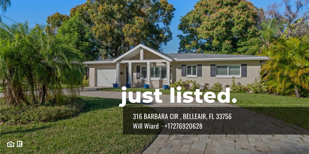 One or more photo(s) has been virtually staged. Welcome to 316 Barbara Circle, a charming three bedroom two bath home with additional office/playroom for your flexibility. Situated in one of Belleair’s most sought-after neighborhoods, where quiet streets, mature landscaping, and a true sense of community define the lifestyle. This beautifully maintained home offers a perfect blend of comfort, functionality, and timeless Florida charm. Thoughtfully designed living spaces are filled with natural light, creating an inviting atmosphere ideal for both everyday living and entertaining. The home features a freshly painted interior, new luxury vinyl plank flooring, plantation shutters, and a well-appointed kitchen complete with granite countertops and stainless steel appliances. Flexible living areas easily adapt to your lifestyle needs, while a water softener adds everyday convenience. Major system updates provide peace of mind, including a newer roof, plumbing, electrical, impact-rated windows and doors, and sprinkler system—all installed in 2018, along with a new HVAC system installed in 2025. Step outside to a private backyard setting perfect for relaxing, entertaining, or enjoying morning coffee under the sunshine. Whether you envision outdoor dining, a garden, or future enhancements, the outdoor space offers endless potential. Located just minutes from Belleair Country Club, Pelican Golf Club, the Intracoastal Waterway, top-rated beaches, shopping, dining, and excellent schools, this home offers both tranquility and convenience. With pride of ownership evident throughout, 316 Barbara Circle presents a wonderful opportunity to enjoy the Belleair lifestyle.