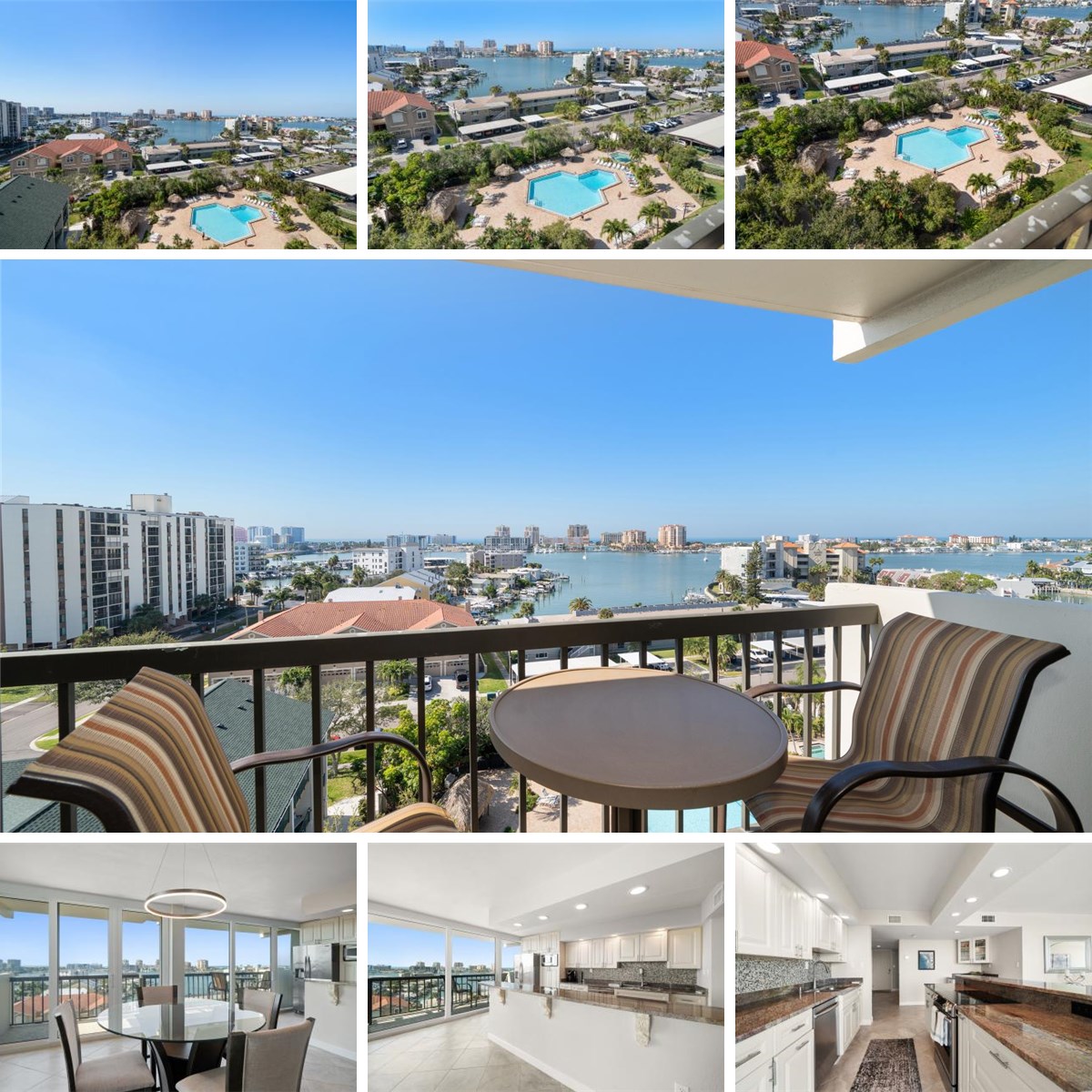 Live the dream at 400 Island Way #901 in Clearwater Beach! This rare corner-unit rental offers panoramic water views, luxury finishes, and the ultimate Florida lifestyle—just minutes from the beach. Available for short term or annual. **Island Living at Its Finest!** Welcome to a stunning 2-bed, 2-bath corner condo perched on the 9th floor of Island Estates’ tallest tower. With 1,390 sq ft of open living space, with in-unit washer & dryer, remote controlled shades, updated windows & sliders, this furnished unit boasts views of the Gulf, Mandalay Bay, and Clearwater Beach from private balconies. Features include: • Floor-to-ceiling hurricane-rated windows & doors • Spacious layout with built-in corner wet-bar/hutch • Updated kitchen with stunning cabinetry, granite countertops, stainless steel appliances and fully updated baths • Resort-style amenities: heated pool, hot tub, fitness center, saunas, bike racks, storage locker and more Start your day with sunrise coffee and end it with breathtaking sunsets over the water. Just minutes from the sugar sands of Clearwater Beach, shopping, dining, and the Clearwater Marine Aquarium. Available now for short term or long-term lease—don’t miss this rare opportunity to live above it all!