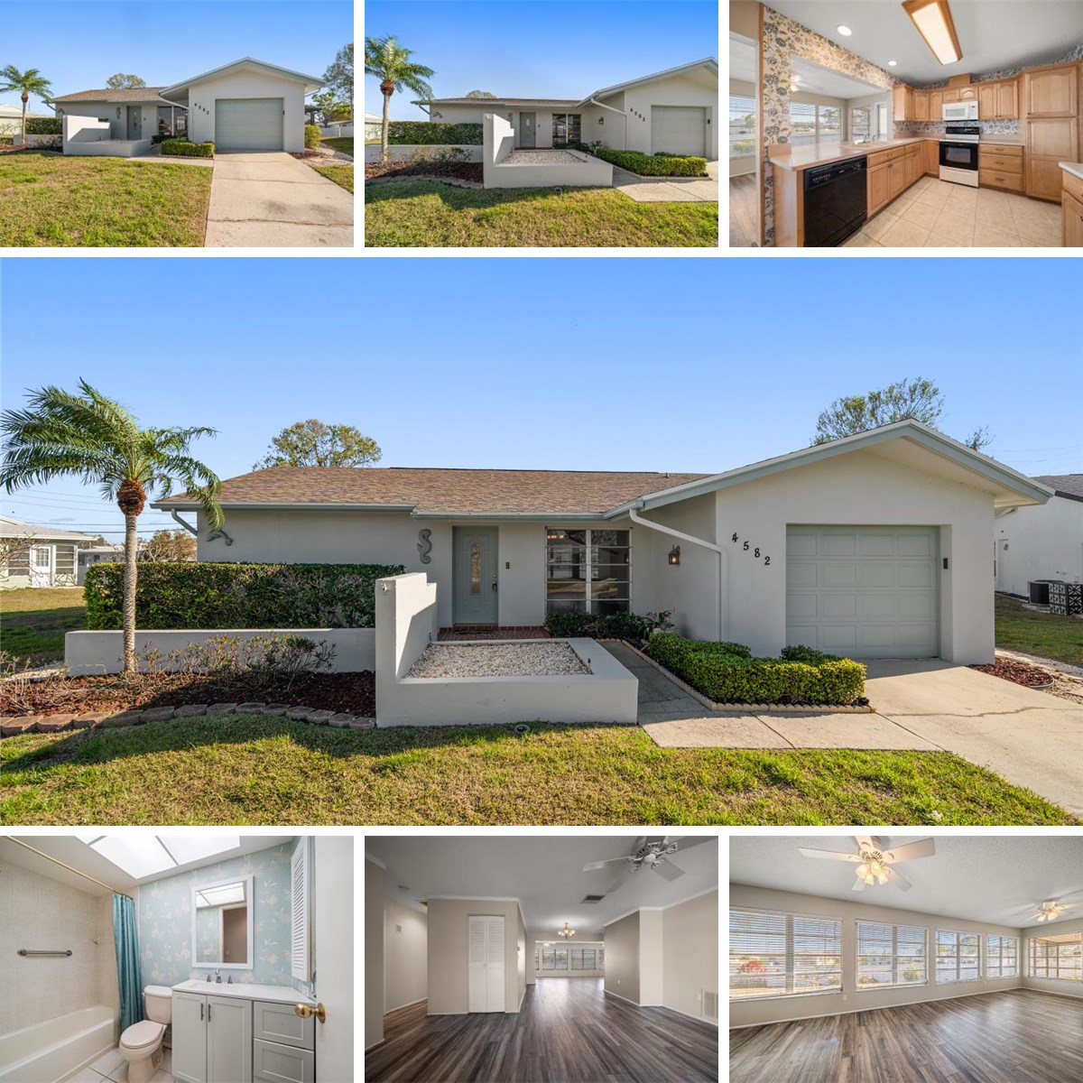 Charming 2-Bedroom Home in the Highly Desirable 55+ Lakes Community! Welcome to peaceful, worry-free living in this beautifully maintained 2-bedroom, 2-bathroom single-family home, block constructed for durability and efficiency. No flood insurance required! Step inside to a bright and inviting living room/dining room combination, perfect for entertaining. The luxury vinyl and tile flooring in the main living areas adds a touch of elegance, while the carpeted bedrooms provide cozy comfort. The spacious master bedroom features two closets and an en-suite bathroom with a tub/shower combination. The oversized Florida Room offers an abundance of natural light and tranquil backyard views, while a passthrough window and breakfast bar from the kitchen add convenience and charm. Enjoy low monthly HOA fees of just $190, covering cable, internet, lawn care, and fantastic community amenities, including a heated pool, clubhouse, game room, library, and shuffleboard courts. Ideally located just minutes from Freedom Lake Park, where you can enjoy paved walking paths, sailboat racing, an outdoor workout area, a dog park, picnic pavilions, and war memorials. With easy access to shopping, dining, an 18-hole public golf course, I-275, airports, downtown St. Petersburg, and the stunning Gulf beaches, this home offers the best of Florida living! Don’t miss this incredible opportunity—schedule your showing today!