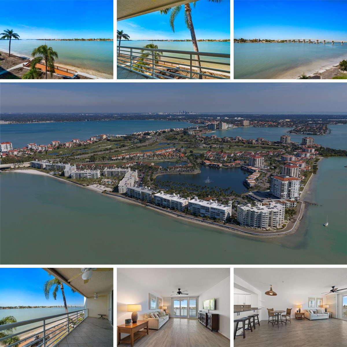 WATERFRONT LIVING WITH DOLPHIN VIEWS! Wake up each morning to sparkling water vistas and the playful sight of dolphins gliding past your windows in this beautifully updated 2-bedroom, 2-bath residence located in the desirable Bahia Del Mar golf community, just minutes from St. Pete Beach. This move-in-ready condo offers breathtaking water views from the living areas and bedroom, creating a peaceful coastal retreat you’ll love coming home to. The updated kitchen features modern finishes and flows effortlessly into the open living space, perfect for relaxing or entertaining after a day on the beach. An inside laundry room with washer and dryer adds everyday convenience, while your assigned parking spot makes coming and going easy. Enjoy resort-style amenities and beautifully maintained grounds in this sought-after waterfront golf community. Whether you’re sipping coffee while watching dolphins play, hosting friends for sunset cocktails, or heading out for nearby shopping and dining, every day here feels like a vacation. Ideal as a primary residence, second home, or income-producing rental, this versatile property gives you the freedom to enjoy it your way. Close to beaches, restaurants, and shopping—yet tucked away in a serene waterfront setting—this is Florida living at its finest. Your coastal lifestyle starts here!!