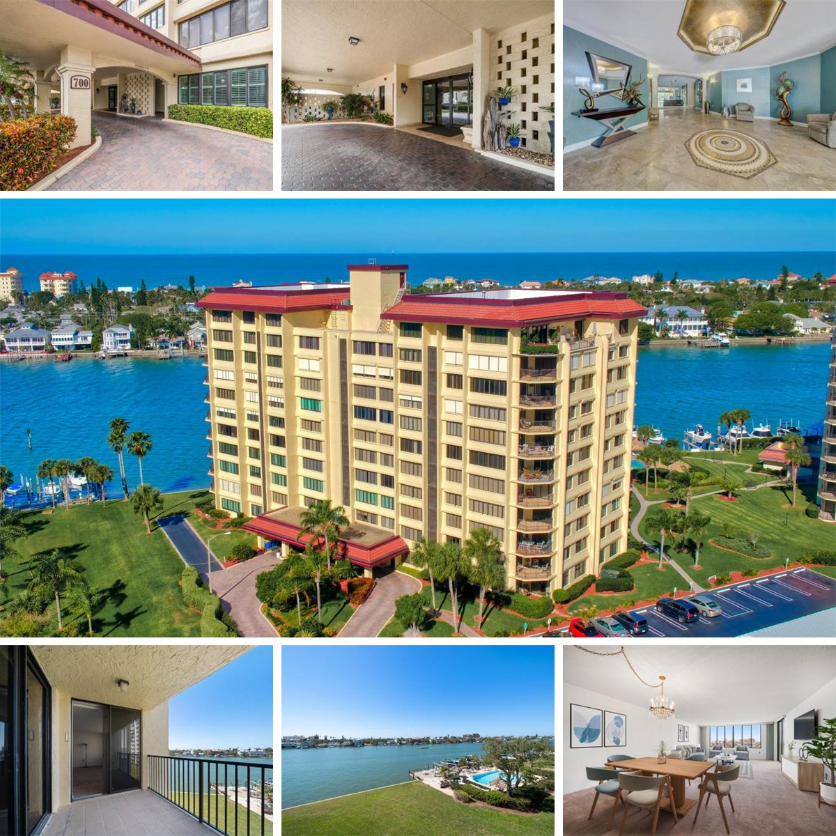 Welcome to Your Waterfront Condo at 700 Island Way #404, Island Estates! Discover the epitome of luxury living in this stunning 2-bedroom, 2-bathroom condo located in the prestigious Island Estates community. With approximately 1,980 sq ft of living space, this condo offers an open floor plan, private balconies, and breathtaking views of the Mandalay Channel. Key Features: Enjoy the expansive living area with large windows that flood the space with natural light and offer panoramic water views. Private Balconies: Relax and unwind on your private balconies from each bedroom & living room. Savor the serene waterfront views and gentle sea breeze that also overlook the large heated pool. Luxurious Amenities: The community boasts a heated waterfront pool, fitness center, billiards room, clubhouse with kitchen & entertaining space, tennis courts, outdoor grilling area, waterfront dining patio, and a dock with a fishing pier. Boat slips are available for an additional cost. Pet-Friendly: Bring your furry friends! The condo allows one dog up to 25 lbs fully grown and a cat. Prime Location: Situated on the northwestern end of Island Estates, you're just minutes away from the pristine beaches of Clearwater Beach and the vibrant downtown Clearwater. Don't miss this opportunity to own a piece of paradise in Island Estates. Schedule a showing today and experience the ultimate in waterfront living!