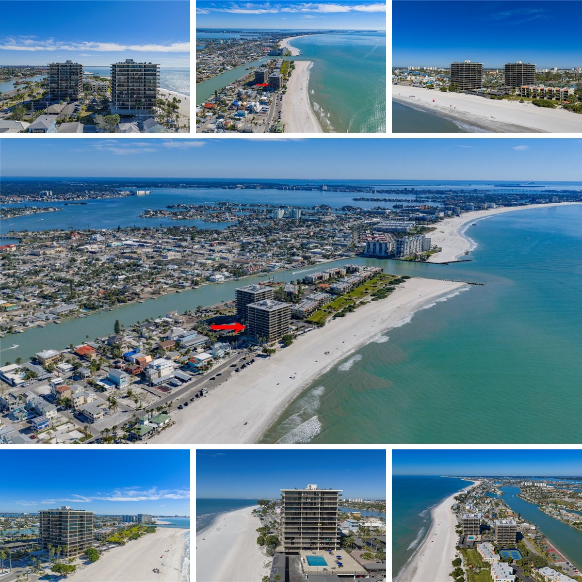Perched on the pristine sands of Sunset Beach, this rare corner residence at the iconic Mansions by the Sea captures the essence of elevated coastal living. With unobstructed views stretching from the shimmering Gulf of Mexico to the tranquil Intracoastal Waterway, every room is bathed in natural light and framed by breathtaking panoramas. Designed to maximize both beauty and function, the expansive floor plan features walls of glass in every room, creating a seamless flow to an 80-foot wraparound balcony—the ultimate stage for morning coffee, sunset cocktails, and soothing sea breezes. The thoughtful layout places bedrooms at opposite corners, ensuring privacy while offering elegant open spaces for entertaining. Recently refreshed with porcelain tile flooring and crisp, neutral paint, the interior offers clean, coastal sophistication. The primary suite is a serene retreat, complete with direct balcony access with Gulf views, a walk-in closet, and an en-suite bath with a large walk/roll-in shower. The kitchen is equally inviting, designed for ease and style whether preparing quiet dinners or hosting guests. For peace of mind, the residence is equipped with power storm shutters on all windows and exterior doors, providing security without sacrificing natural light or views. Mansions by the Sea is a Gulf Coast’s exclusive beachfront community, offering a gated, resort-style lifestyle with amenities that rival a private club: heated beachfront pool, fitness center, tennis and pickleball courts, library, community room, on-site management and maintence staff, covered parking, and direct access to one of Florida’s most celebrated beaches. Whether you seek a full-time Gulf-front sanctuary or an exceptional seasonal escape, this coveted corner unit delivers privacy, prestige, and the effortless coastal lifestyle found only at Mansions by the Sea. Welcome to your place in the sun!