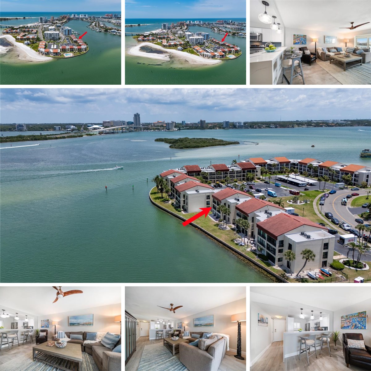 HUGE PRICE REDUCTION! One of the best deals in Clearwater Beach. Grab this gorgeous condo before it is gone! Come and see one of the best condos at Clearwater Point in this rarely available Marina House building. This 55+ community is very popular because of its quiet location, no years of ownership prior to leasing required and its fabulous views of the water. Live the stress-free beach life at Clearwater Point from this safely located second floor unit. This Clearwater Point gem has incredible open intracoastal water views from your Primary Bedroom and Living Room. Watch the dolphins play and see luxury yachts passing by from this recently luxury remodeled condo. You can enjoy a good life with a dip in the spa, a swim your choice in the heated pool, and a homemade dinner from one of the many grills by the 3 available clearwater point pools. There are plenty of tables by the grills that overlook the intracoastal. You get the best of both worlds by watching the boats and the dolphins play, as well as being able to walk on Clearwater Point's powder sand beach. Clearwater Point also offers shuffleboard and Tennis Courts/Pickle Ball for your enjoyment. This 2 bedroom, 2 bathroom Condo is equipped with all new High Impact Hurricane windows and sliders for your peace of mind. Newly remodeled Luxury Bathrooms with no expenses spared. The primary has a quiet open water view overlooking the Clearwater Bay. The kitchen is designer like remodeled with waterfall edge quartz countertops including backsplash, new stainless steel appliances, and has a breakfast bar that opens to the dining area/Great Room. Rare rare to find laundry room including washer and dryer inside your unit! Mesmerizing Water Views through expansive sliding doors from the Kitchen, Great Room, Primary Bedroom and the Florida Room. The external storage closet is perfect for beach gear and is a short distance from your condo. Condo has an assigned private parking spot #31. Clearwater Beach is consistently rated at the top of Trip Advisors and other lists for Best Beach in America. Walking distance to local shops, amazing restaurants, and world-famous Clearwater Beach. This community is very active and offers new fencing including security guard for your safety. If you like boating, right across from the complex is the Clearwater Yacht Club for dining or boating. Located close to the Sand Key Bridge to avoid traffic and steps away from Numerous Restaurants, Beach Walk, and excitement Clearwater Beach has to offer. Escape those winter months, grab your sunscreen and flip flops, and don't miss out on the next Gulf of Mexico sunset!