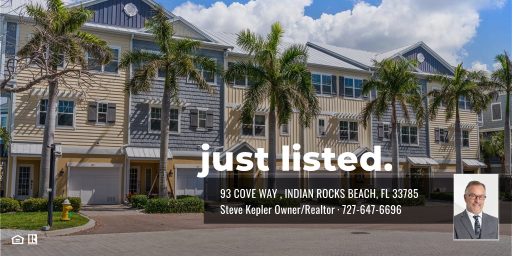 Gated End Unit – Walk to Indian Rocks Beach! Beautiful three-level townhouse located in The Cove at Indian Rocks Beach featuring 4 bedrooms, 3 baths, and spacious open living areas. This end unit offers upscale finishes including granite countertops, wood floors, 10-foot ceilings, and crown molding throughout. The open-concept layout leads to a screened east-facing porch—perfect for enjoying peaceful sunrises. The expansive primary suite features a sitting area, en-suite bathroom, and walk-in closet. Built for durability with hurricane-impact windows, Hardie board exterior, and elevated construction for added peace of mind. The beach is directly across the street, making it easy to enjoy daily walks along the beautiful white sands. Community amenities include gated entry, a heated pool, outdoor kitchen, and dock access for small watercraft. 30-day minimum rentals allowed, offering excellent flexibility for owners and investors. Enjoy exceptional walkability to local favorites including Splash Harbor Water Park, Crabby Bill’s, shops, and dining.